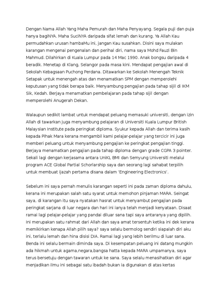 Mara Karangan Mengenai Perihal Kerjaya Diri Perancangan Pengajian Dan Saya Noor Amiera Ashikin Binti Zulkifli Berumur 21 Tahun Saya Lahir Pada 31 Course Hero
